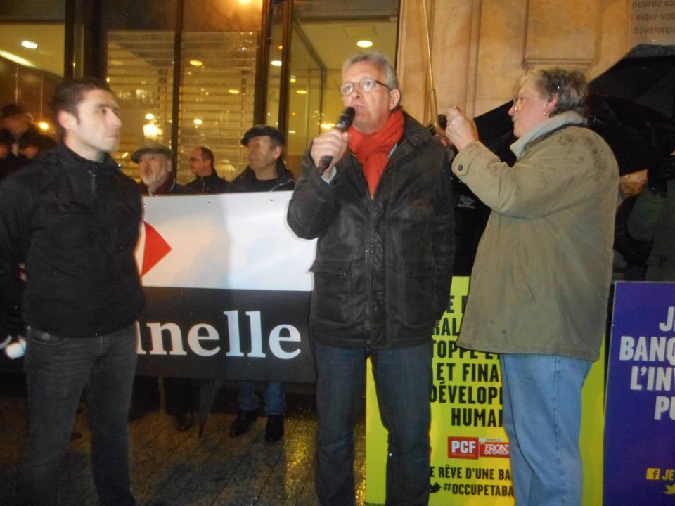Malgré un temps pluvieux, un rassemblement du collectif « Je rêve d’une banque qui… » initié par le PCF, et qui réunit les composantes du Front de gauche et de EELV, s’est tenu sur les Champs Elysées devant le siège de la banque HSBC.